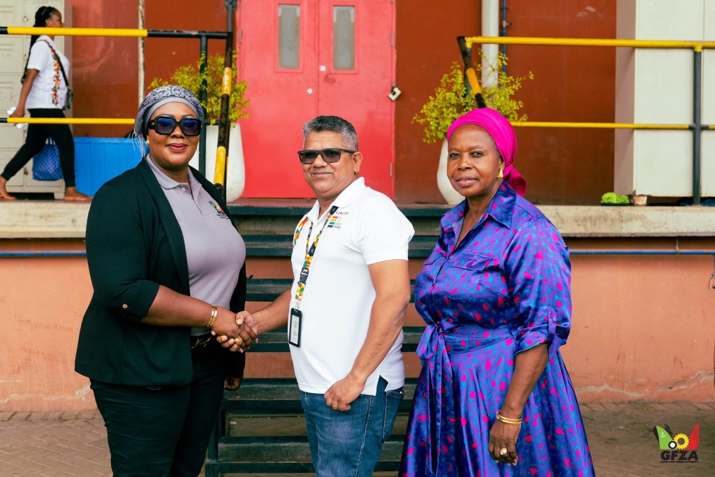 On Wednesday, 22nd April 2024, the Chief Executive Officer of the Ghana Free Zones Authority (GFZA), Dr. Mary Awusi, paid a working visit to two Free Zones Enterprises (FZEs) located within the Tema Export Processing Zone (EPZ). The purpose of the visit was to strengthen the Authority’s relationship with the enterprises and provide a platform for discussing operational concerns.