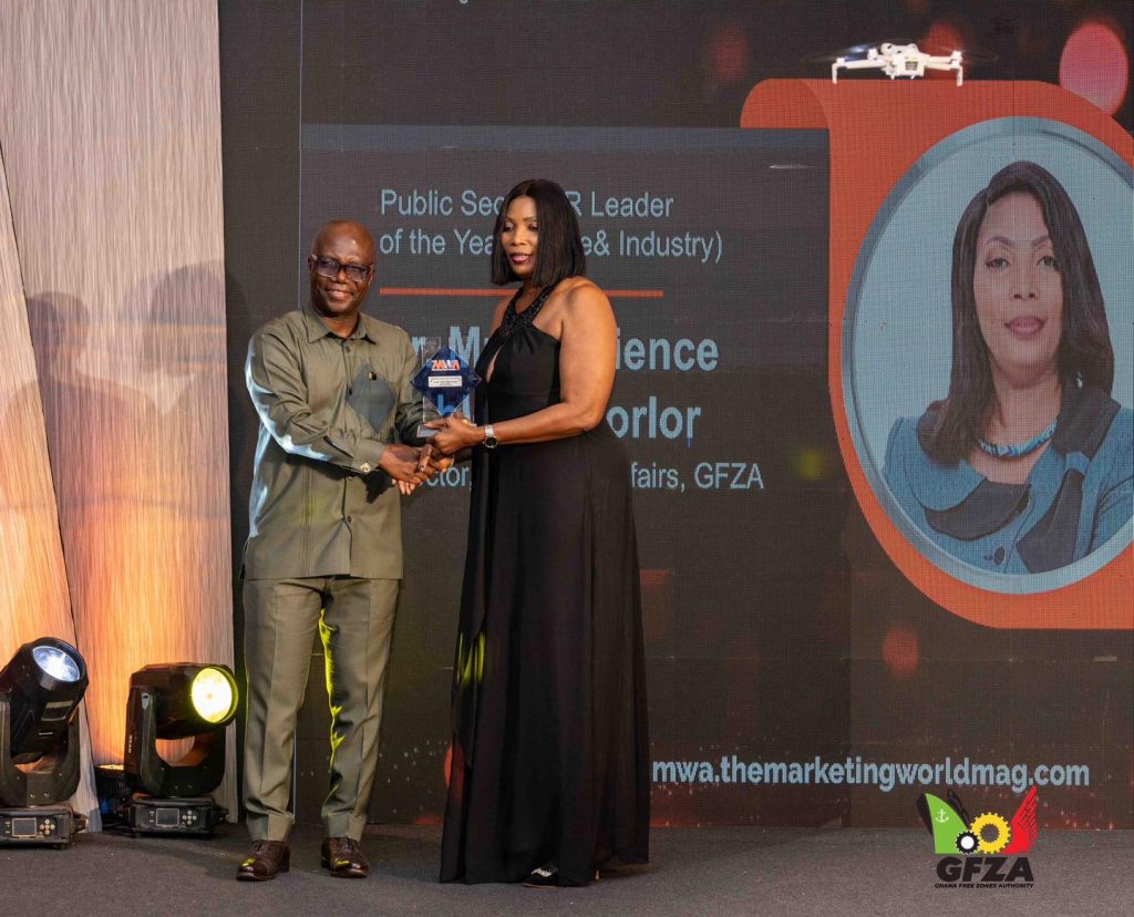 The Ghana Free Zones Authority (GFZA) was named Public Sector Brand of the Year (Trade & Industry) in recognition of its impactful brand communication. Additionally, the Director of Corporate Affairs, PR & Aftercare, Dr. Mrs. Patience Agbleze Acorlor, received the award for Public Sector PR Leader of the Year (Trade & Industry) for her exemplary leadership in advancing the GFZA’s communication efforts.