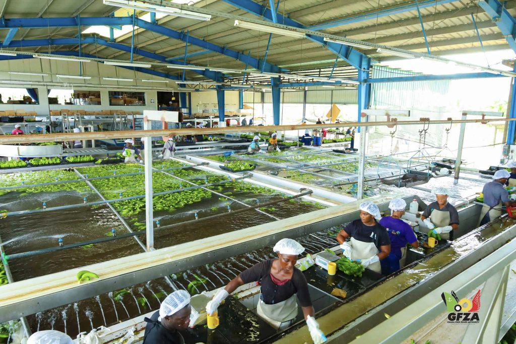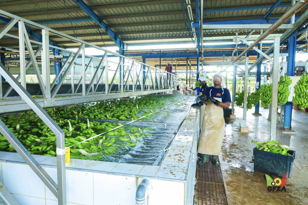 On April 11, 2025, a team from the Ghana Free Zones Authority (GFZA), led by Madam Patience Agbleze Acorlor, Director of Corporate Affairs & Public Relations, visited Golden Exotic Limited—a subsidiary of the French fruit distributor Compagnie Fruitière—in Asutuare as part of the Employee Enterprise Experience initiative. Established in 2003, Golden Exotic Limited is Ghana’s leading banana producer and exporter under the Ghana Free Zones, managing two plantations spanning about 2,500 hectares.