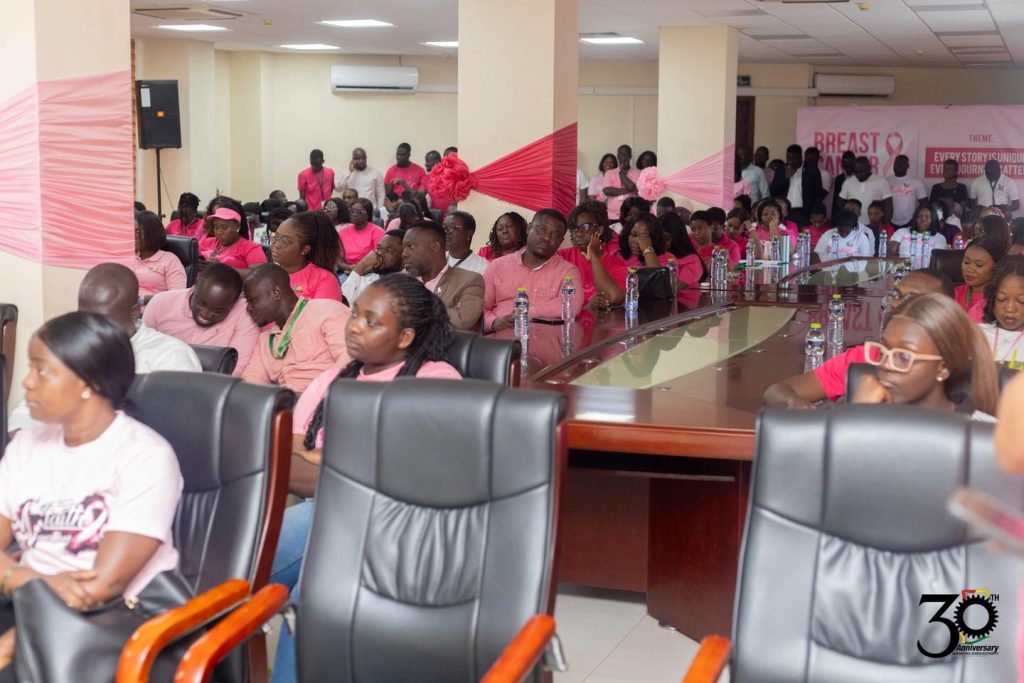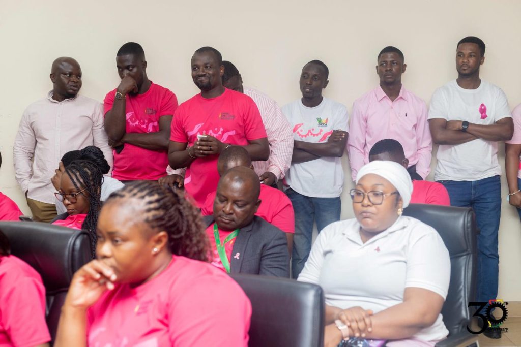 As part of the Breast Cancer Awareness Month and its 30th anniversary celebrations, the Ghana Free Zones Authority (GFZA) organized a Breast Cancer Awareness and Screening Session for staff under the theme “Every Story is Unique, Every Journey Matters,” reaffirming its commitment to promoting health and wellness in the workplace.